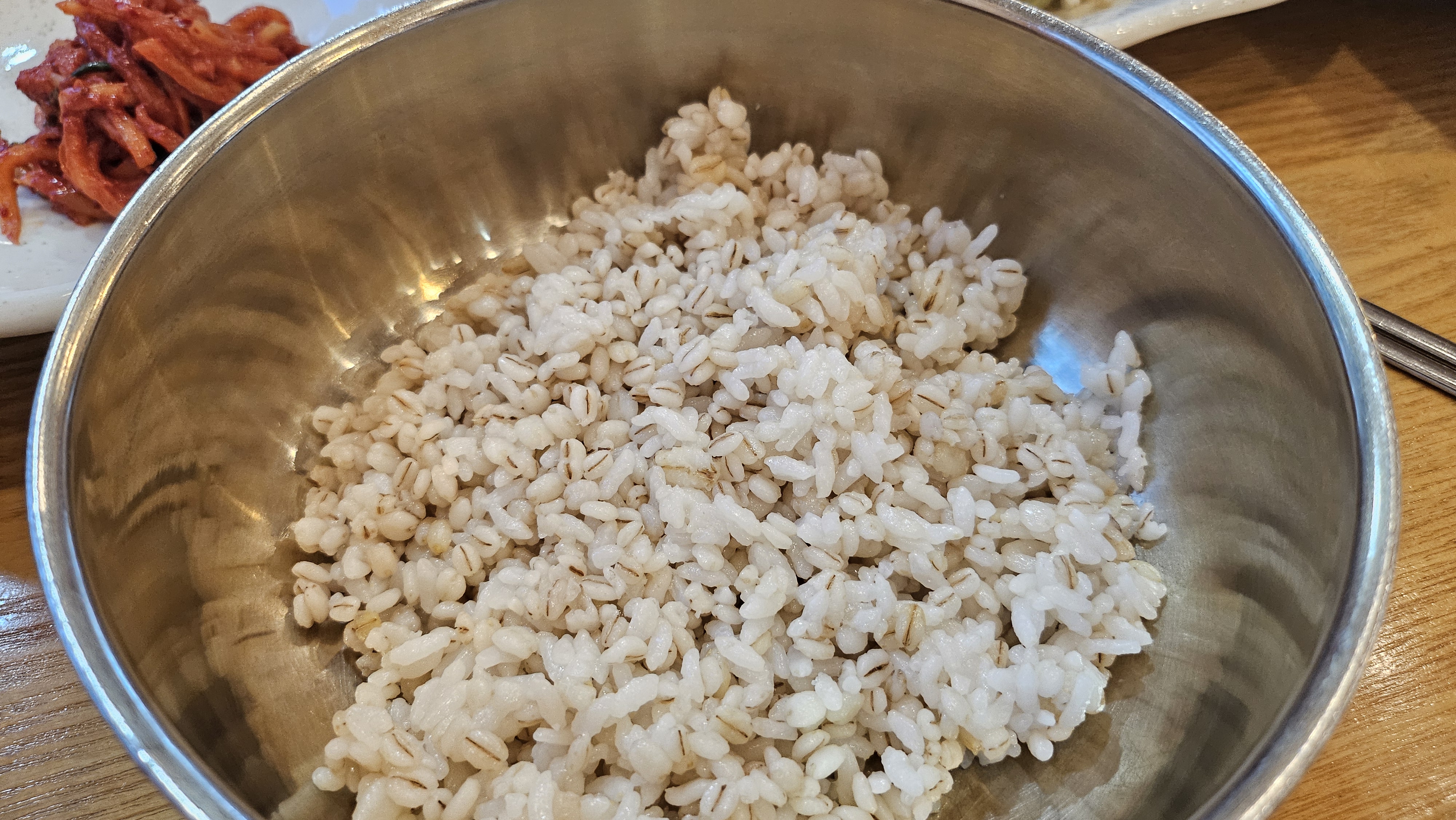 보리밥에도 쌀이 조금은 섞여 있어요. 되거나 질지 않고 적당한 맛있는 보리밥이었습니다!