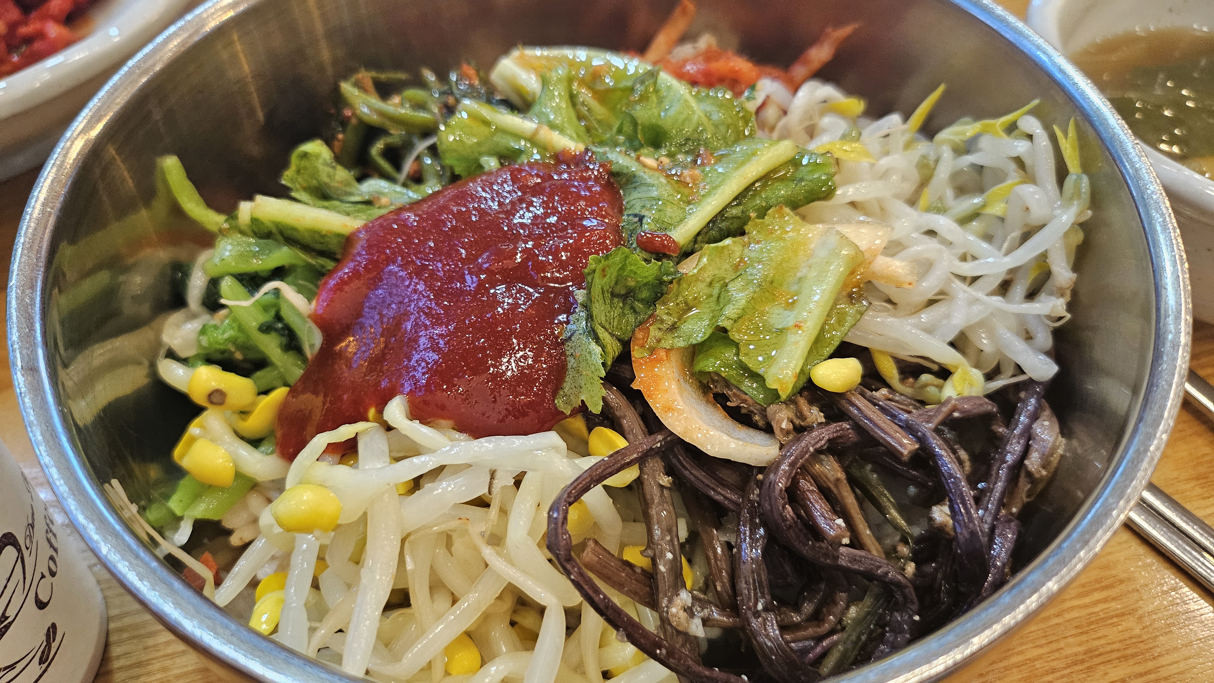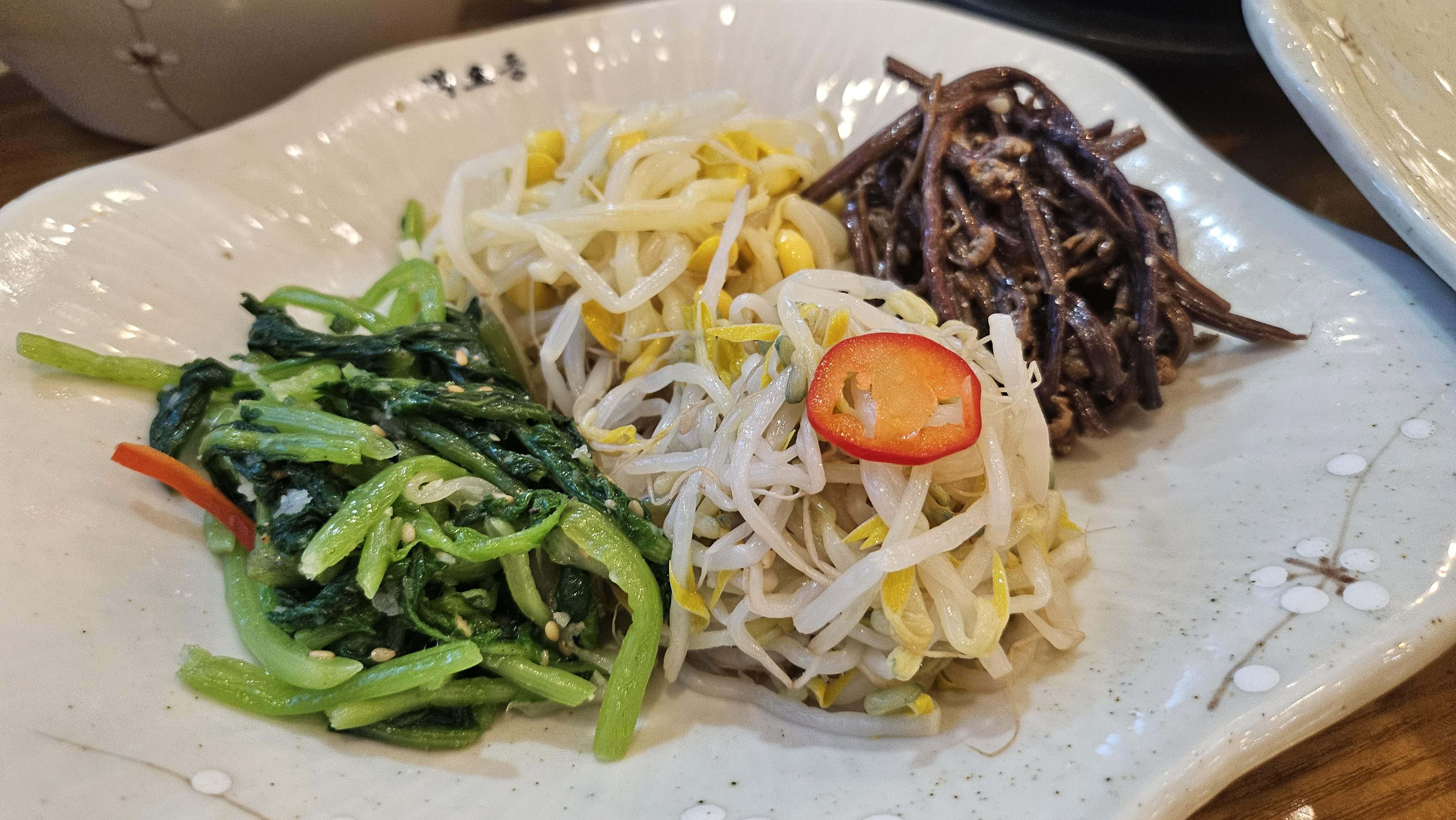 시금치, 콩나물, 숙주, 고사리의 네가지 나물도 나오구요.
