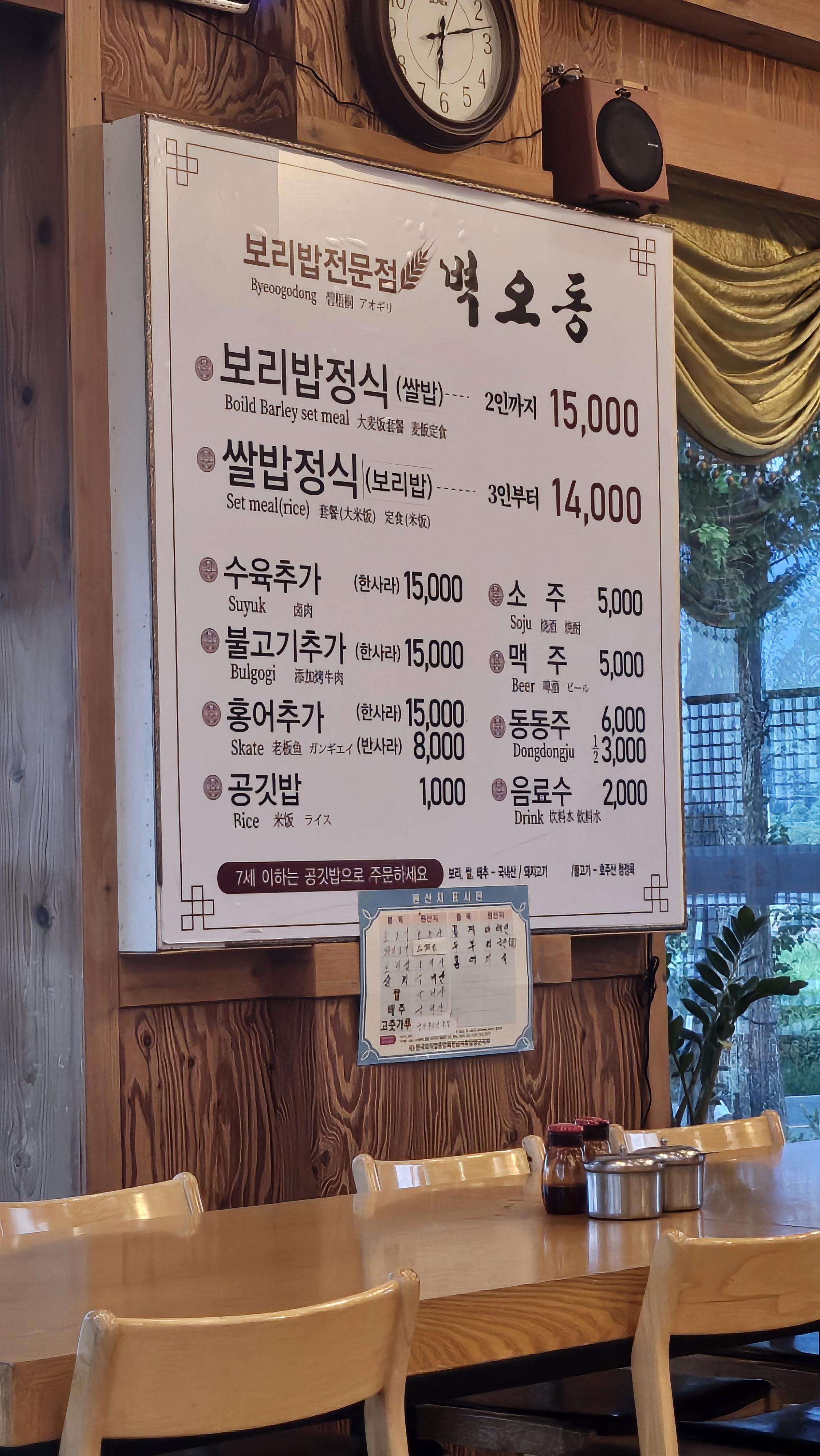 보리밥정식과 쌀밥 정식을 추천드립니다.